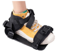 Sätt fotledsbanden eller tåbanden på patientens fotled och fot. Bestäm längden på justerbandet. Trä banden genom motsvarande hål i fotplattan.