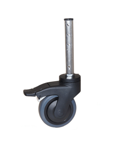Tämä lisävaruste mahdollistaa Kakadu-wc-/suihkutuolien korkeuden säätämisen 145 mm pidennetyllä alumiiniputkella. 5″ pyörä tarjoaa sujuvan liikkuvuuden ja varman pidon märillä pinnoilla. Helppo asentaa ilman erikoistyökaluja.