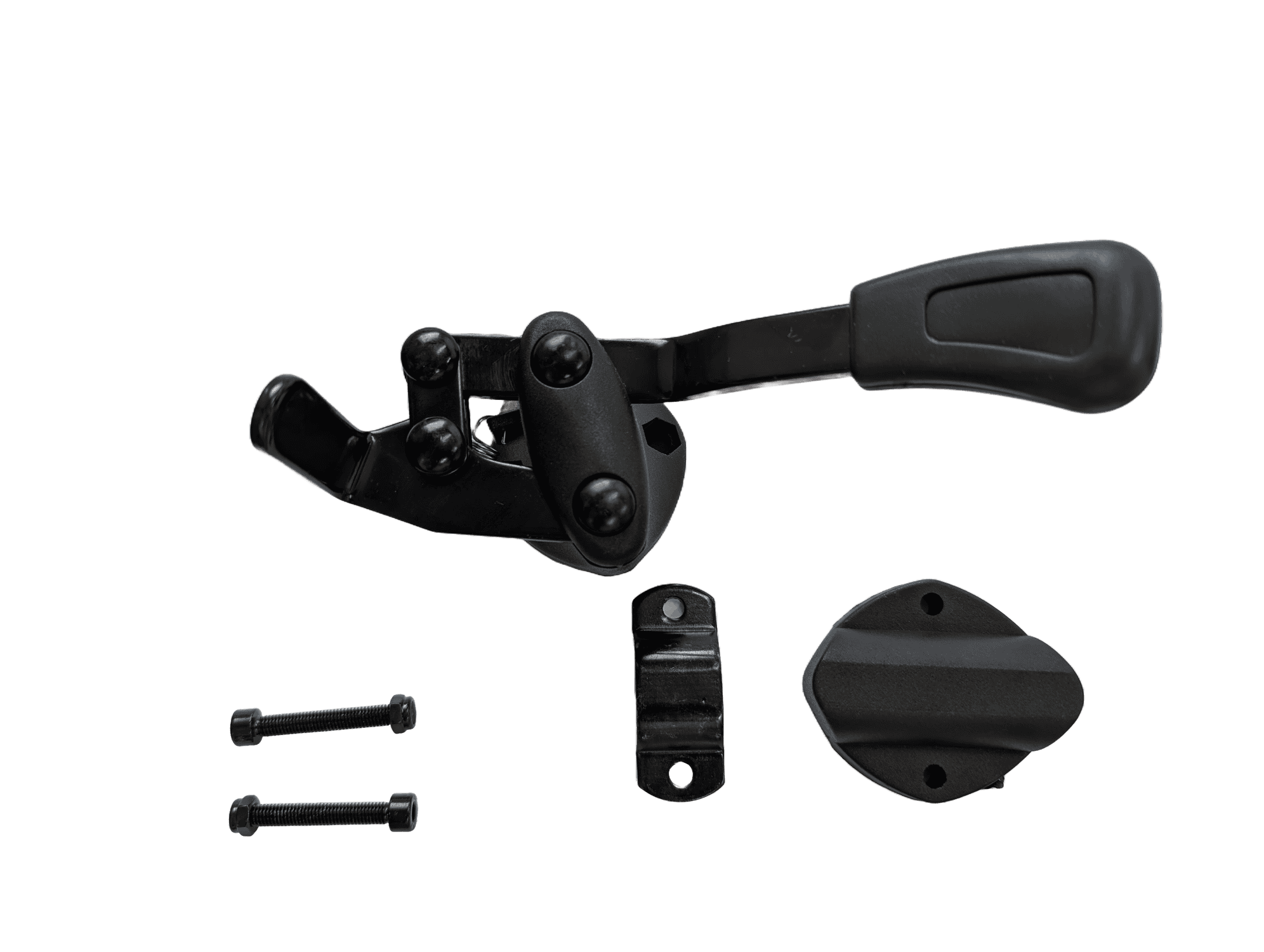 Pyörätuolinjarru vetotoiminnolla ja yksinkertaisella vinolla jarrukahvalla.